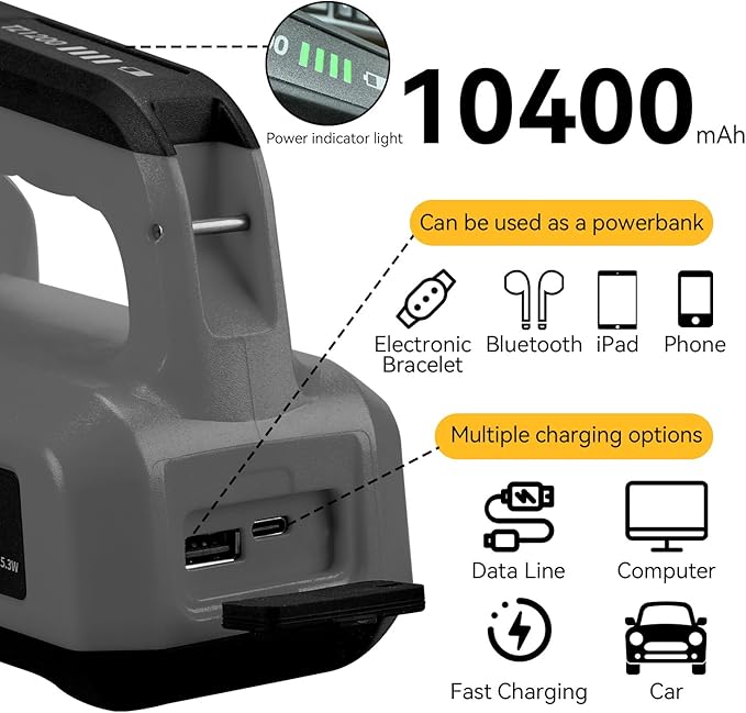 - ★[10400 Capacity BATTERIES] :Built-in 10400 mAh rechargeable lithium battery, charge for your camera, phone, notebook and other devices during the trip. can be fully charged in 4.5 hours with the included Type-C cable, up to 6-24 hours of battery life.