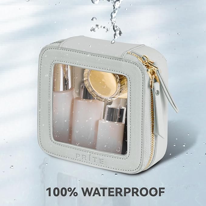 Prite Small Makeup Bag for Women Portable Clear Makeup Bag Cute Mini Waterproof Travel Cosmetic Bag with Gold Zipper for Car Essentials(Grey)