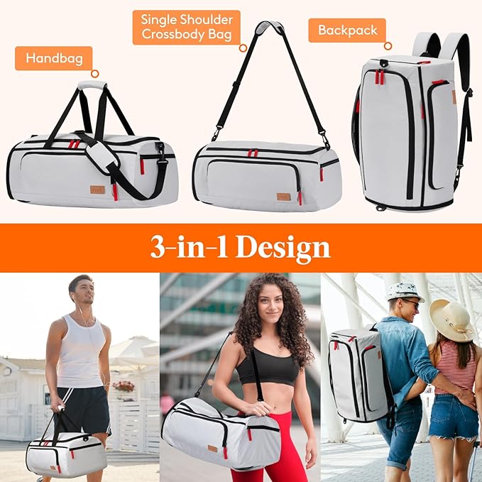 Lifewit Gym Bag for Men & Women with Shoe Compartment, 40L Carry On Duffle Bag for Travel, 3 In 1 Waterproof Weekender Workout Overnight Sports Backpack with Dry and Wet Seperation, Silver Gray
