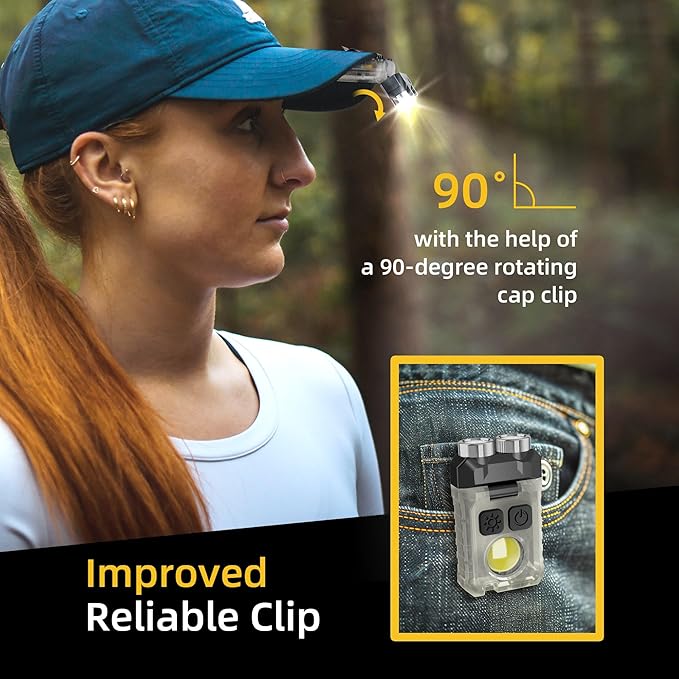 - Versatile Lighting with 90° Rotating Cap Clip! - This small flashlight features a 90 degree rotating head, providing precise light control for any task. The back clip ensures easy everyday carry, letting you attach it to your hat as a cap light. This pocket sized flashlight can also clip onto your collar, pocket, belt, or backpack. Whether you're walking, running, cycling, hiking, or facing an emergency, it offers the perfect lighting solution.