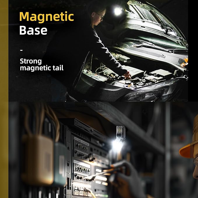 - Magnetic Unlimited, Accompanied by LED Flashlight & COB Floodlight - Power up your workspace with our magnetic keychain flashlight, featuring a robust magnetic tail that securely attaches to any metal surface. Ideal for hands-free operation, this tool simplifies tasks at workbenches or under car hoods. The side of the COB floodlight makes the key light have a more uniform and bright lighting effect, providing sufficient brightness for car work and complex repairs, allowing for a more focused and comfortable task completion.