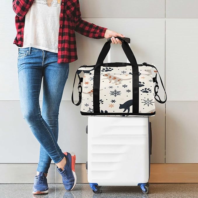 Christmas Snow Cat Travel Duffel Bag Waterproof Gym Sport Tote Bag Carry On Weekender Bag with Compartment