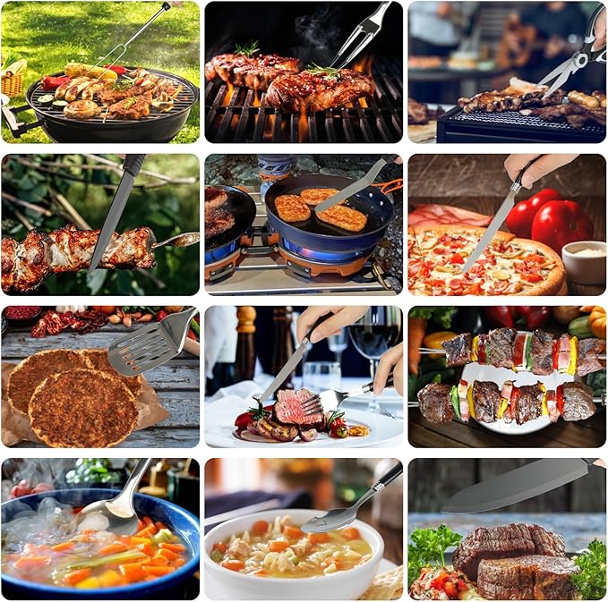 - Versatile Cooking Companion: Ideal for grilling, camping, picnics, or backyard BBQs, this set includes everything you need—from tongs and forks to spice shakers and cutting boards. Perfect for any outdoor cooking scenario!