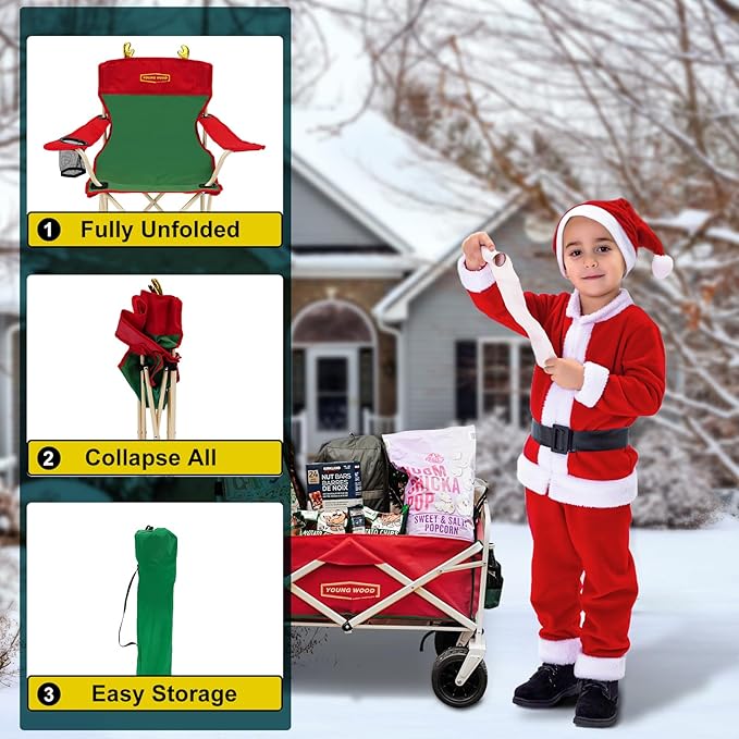 YOUNG WOOD Portable Camping Chair Beach Chair Outdoor Foldable Chair, Included Mesh Cup Holder & Safety Lock to Avoid Pinch Hand, Suitable for Christmas, Camp, Party, with Carrying Bag, Ages 2 to 7