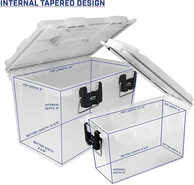 - Space-Saving Tapered Design: Both boxes nest for efficient storage when not in use, saving space in your garage or cargo area. Note: Internal dimensions differ slightly due to the tapered design; refer to images for accurate internal measurements.