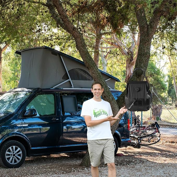 - Large capacity beautiful design : Our portable solar shower camping shower bags are designedwith high quality mesh stripes This camping shower bag has a capacity of 5 gallons, Heavyenough water to provide you with bathing and washing use
