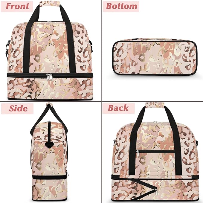 cfpolar Woman Travel Duffel Bag Leopard Print Animal Foldable Tote Carry On Luggage Sports Gym Bag With Shoe Compartment Overnight Weekend Yoga Workout Bag Training Handbag