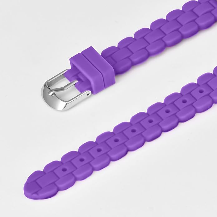 • Light purple silicone strap with buckle closure for a customized fit.