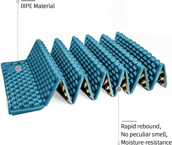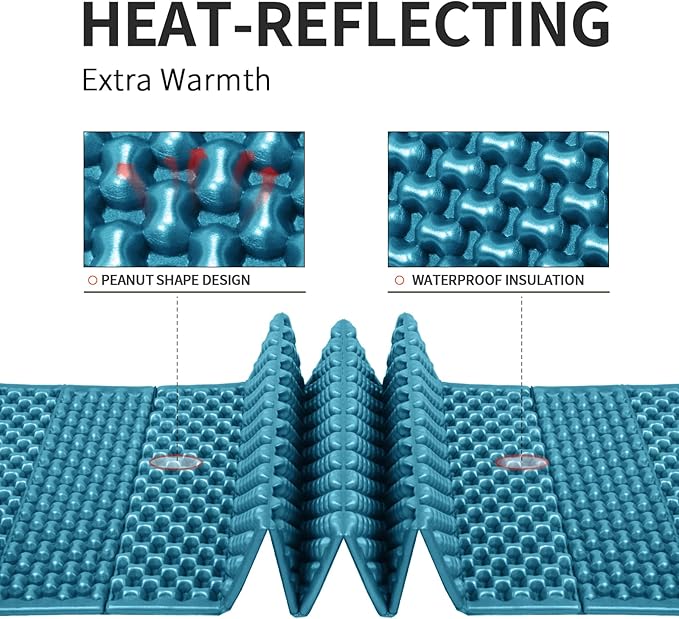 - 【Peanut Shape and Space Saving】Camping foam sleeping pad for camping features Peanut shape design and accordion-style design. Peaks and valleys work together to reinforce support capacity and trap nest one to another inside to save space when packed.