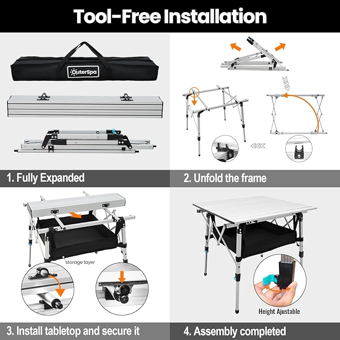 - ๐ช๐ฒ๐ฎ๐๐ต๐ฒ๐ฟ-๐ฅ๐ฒ๐๐ถ๐๐๐ฎ๐ป๐ ๐๐ฒ๐๐ถ๐ด๐ป: Constructed with weather-resistant materials, including a rust-proof aluminum frame and a water-resistant tabletop, this camping table is built to withstand rain, wind, and sun. Its durable design ensures year-round reliability and excellent performance in all outdoor conditions.