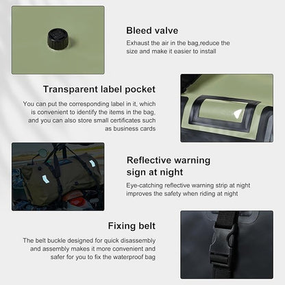 - 【Easy to Use and Quick Install】:The dry duffel bag is equipped with four quick release straps, you can fasten the duffle bag anywhere, it is convenient to fasten on motorcycles, boats, kayaks and bikes,Even on rough terrain, the bag remains stable. Our Waterproof Duffel Bag is soft sided and completely collapsible to make storage easy!easy to clean and wipe, and instantly bright.
