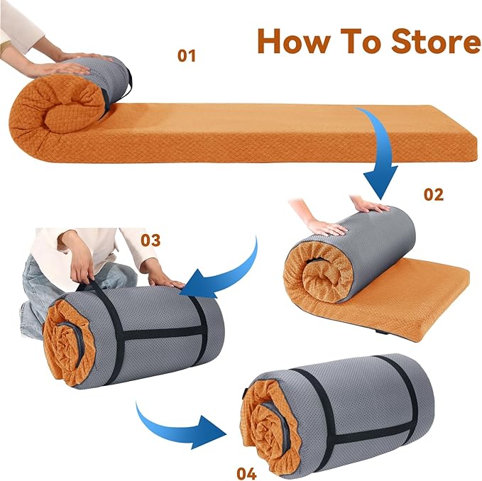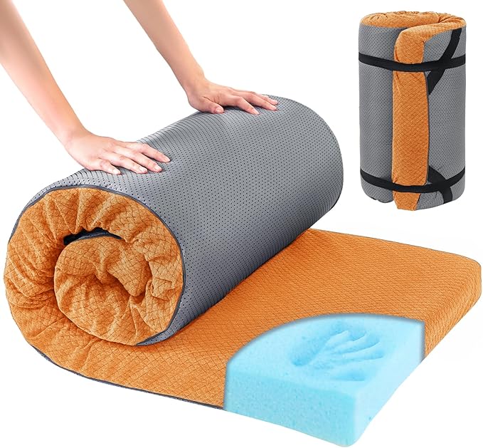 HOMBYS Memory Foam Camping Mattress Pad,Portable Sleeping Pad for Adult,Waterproof Cot Mattress,Roll Up Floor Mattress,Foldable Backpacking Travel Bed for Hiking,Guest Bed