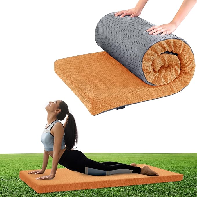 - 【PORTABLE DESIGN】The memory foam camping mattress rolls up easily for storage and travel. The lightweight mat is easy for you to carry. Equipped with storage strap for backpacking, hiking, road trips or yoga classes, etc.Our memory foam sleeping pad measures 72’’ Length, 24’’ Width and 3’’ Height to fit more persons and packing straps are included.