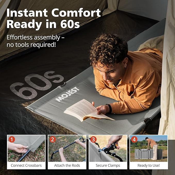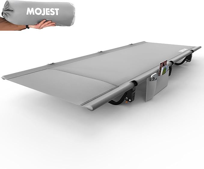 - Comfortable and Quiet Sleep – Rest peacefully on our firm camping cot with a durable Oxford fabric bed surface and an integrated pillow pocket for added comfort. Our 7-inch height design keeps you elevated, dry, and warm throughout the night