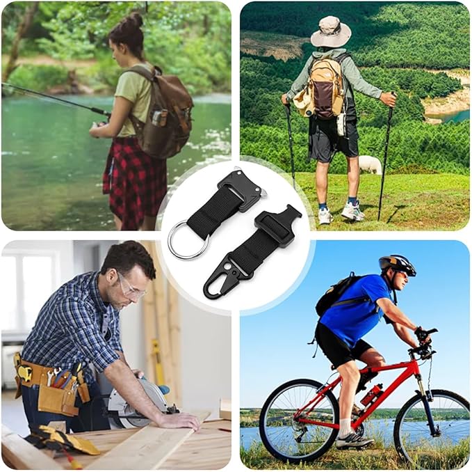 - Multifunctional Keychain: The locking key organizers can be fastened on your belt ring as a key clip, also can be used as a hook for your harness. The heavy-duty nylon webbing of the clips allows for a wide range of uses, from hanging potted plants to securing power tools and automotive supplies. It's also great for hanging water bottles, camping gear, and lanterns