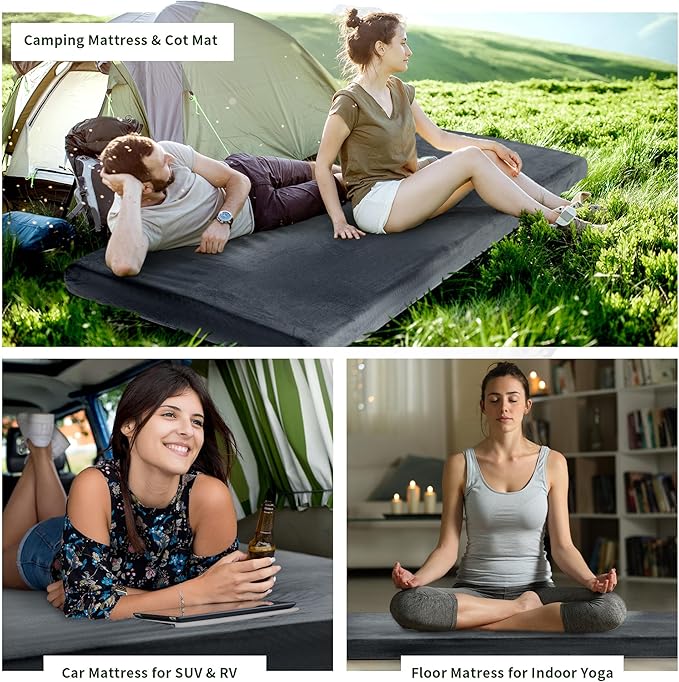 - 【2-Layer Memory Foam】The camping mattress features a 2-layer design that includes 1" of high-density memory foam and 3" of soft support foam. This combination creates a medium firmness that balances comfort and support and retains its shape even after extended use.