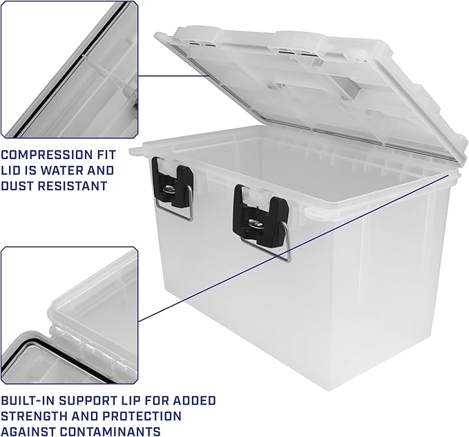 - Versatile Storage: Includes two XL boxes. Perfect for .50 caliber, .308, 6.5 Creedmoor ammunition, shotgun shells, tools, supplies, or camping gear. Features lid with built-in tray for organizing small parts and hardware.
