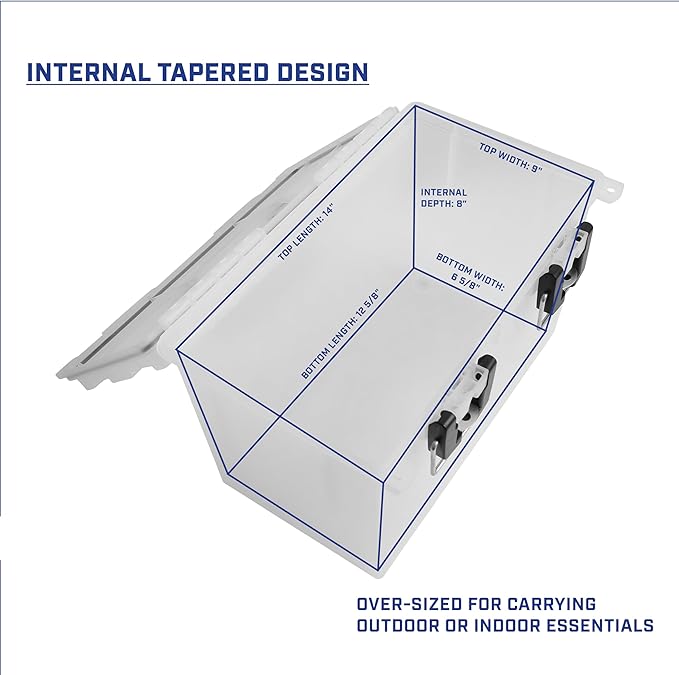 - Tapered Design: The tapered design allows for efficient nested storage, saving space in your garage or cargo area when not in use. Internal dimensions taper from 14" x 9" at the top to 12-5/8" x 6-5/8" at the base, with a depth of 8 inches.