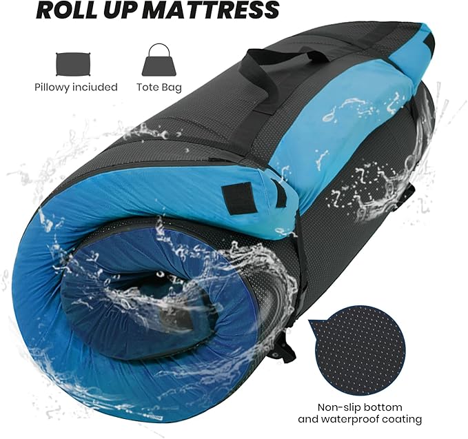 - 【OPTIMAL SUPPORT】: In addition to its softness, the roll up mattress also offers excellent support. Whether you sleep on your back, side, or stomach, the sleeping pad can precisely adapt to the curves of your body. By evenly distributing your weight, it reduces pressure on the joints and spine, promotes correct posture, and prevents discomfort during sleep.
