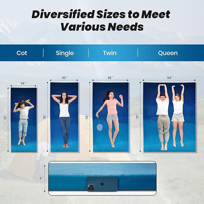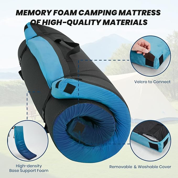 - 【ULTRA SOFT】: The memory foam camping mattress is well made and offers an unparalleled soft touch experience. When you lie down, the camping mattress gently conforms to your body, wrapping you in a cloud - like embrace. This softness helps relieve pressure on your body, making it ideal for a restful sleep.