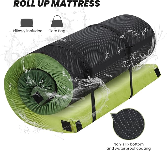 - 【OPTIMAL SUPPORT】: In addition to its softness, the roll up mattress also offers excellent support. Whether you sleep on your back, side, or stomach, the sleeping pad can precisely adapt to the curves of your body. By evenly distributing your weight, it reduces pressure on the joints and spine, promotes correct posture, and prevents discomfort during sleep.