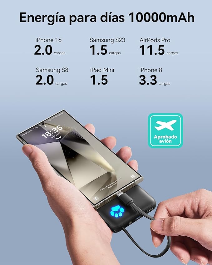 - Grab & Go, No Extra Wires Needed: This 10000mAh power bank features a built-in USB-C cable that charges both your phone and the power bank and doubles as a lanyard. Leave home without extra cables.