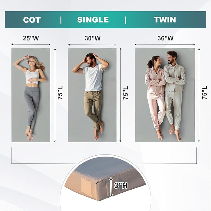 - 【SOFT & SUPPORTIVE】: The 3 inches Eiayeebil camping mattress is a portable floor bed designed for a better sleeping environment and includes 1 inch of gel memory foam and 2 inches of high-density support foam. This combination produces a medium-firm feel with a balance of comfort and support that retains its shape even after prolonged use.