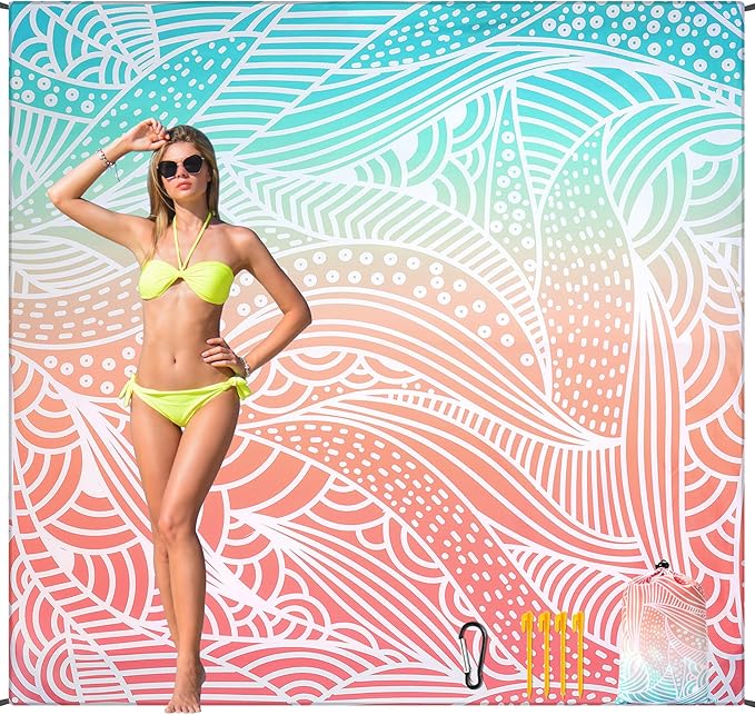 Beach Blanket Waterproof Sandproof Beach Mat 79โx 83โ for 1-4 Adults Quick Drying Durable Outdoor Picnic Mat for Beach Festival Travel Camping Hiking (Gradiant P&GN-Ripple, 79"ร83"(4 Person))