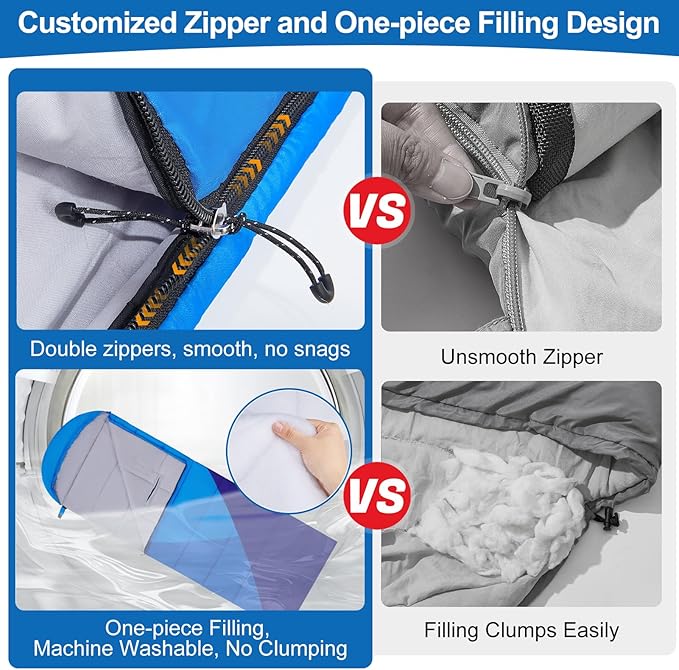 - Unique Design: Sleeping bags for adults, comes with a custom-printed pattern, bright colors, the smooth double zippers won't snag; Bottom zipper design, breathable, allowing your feet to move freely, and you can fully unzip the bottom to use it as a mat or blanket