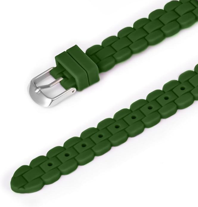 • Dark green silicone strap with buckle closure for a customized fit.