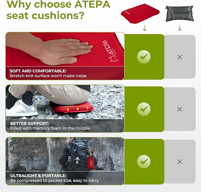 ATEPA Inflatable Stadium Seat Cushion, Self-Inflating Memory Foam Stadium Seats Camping Accessories Chair Pad for Outdoor Airplane Travel Bleacher Patio Backpacking