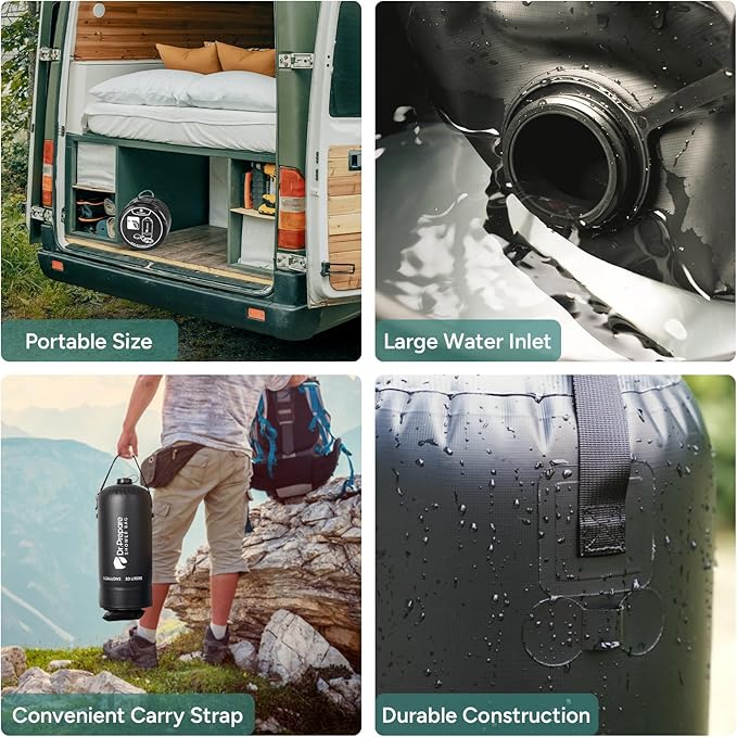 - [Durable and Reliable] Crafted from thick and robust PVC, this camping shower bag is designed for prolonged use, even in harsh environments. The tightly bonded connections and the thicker PVC ensure heightened strength and durability, outperforming others on the market.