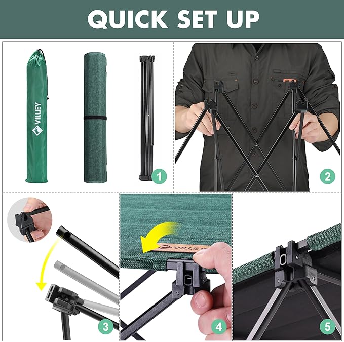 - Strong Yet Lightweight – Premium aluminum alloy frame supports up to 66 lbs while keeping the table ultra-light (3.4 lbs). Easy to carry and ideal for minimalist campers