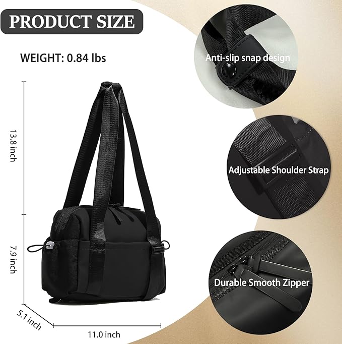 - Compact And High-Capacity Design: This mini gym bag measures 11.0" x 5.1" x 7.9" and weighs only 0.84 lbs. Despite its compact size, the gym bags for women can provide enough capacity for fitness necessities such as water bottle, toiletries, cosmetics, headphones, mobile phones, Wallet, etc