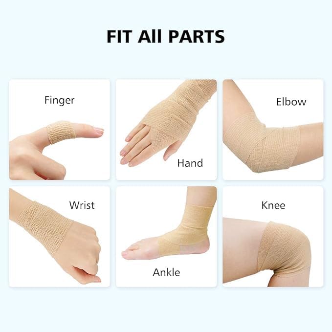 - Multi-purpose: Our bandages are crafted using a high-quality porous fabric and non-woven material, offering excellent ventilation and skin safety. The durable elastic material is designed for ease of application to any body part, making it convenient for a variety of uses. They tear easily by hand without the need for scissors, making them practical for wrapping wrists, fingers, ankles, backs, knees, feet, and suitable for pet care as well.