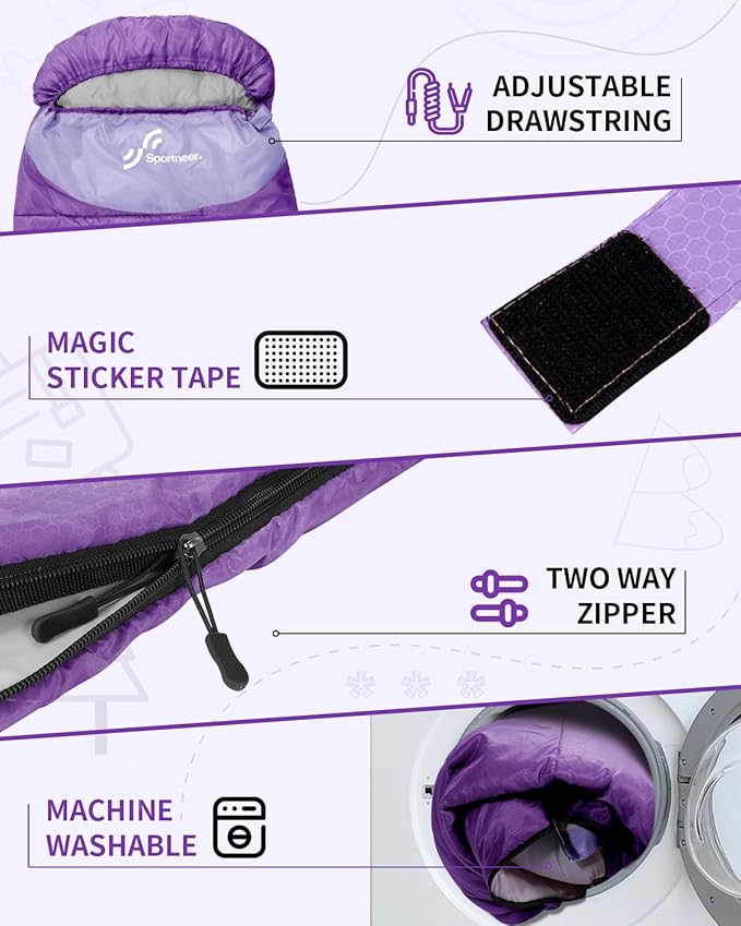 Sportneer Sleeping Bags for Adults, Warm & Cold Weather Sleeping Bag for Adults Kids Boys Girls - Lightweight Compact Camping Gear Equipment, Traveling, Backpacking, Hiking