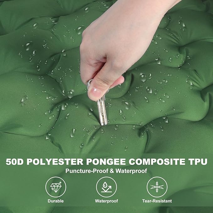- Durable and Reliable Quality:Crafted from high-quality 50D Polyester Pongee composite TPU, our camping mattress is built to last. It can support up to 330 pounds and is resistant to punctures, making it the perfect companion for all your outdoor expeditions. The waterproof design ensures it stays dry and comfortable in any weather conditions;