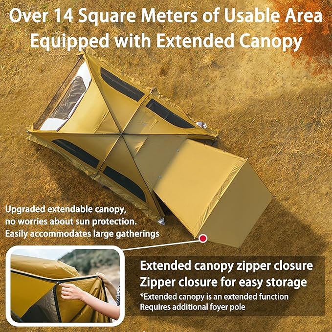 - 【14m² Usage Area with Extended Canopy】: Naturehike 4-6 Person 4-Season Camping Tent is Over 14 square meters of use area is equipped with an extended canopy (zipper opening and closing), which provides shade and protection from the sun, and easily accommodates multi-person gatherings.