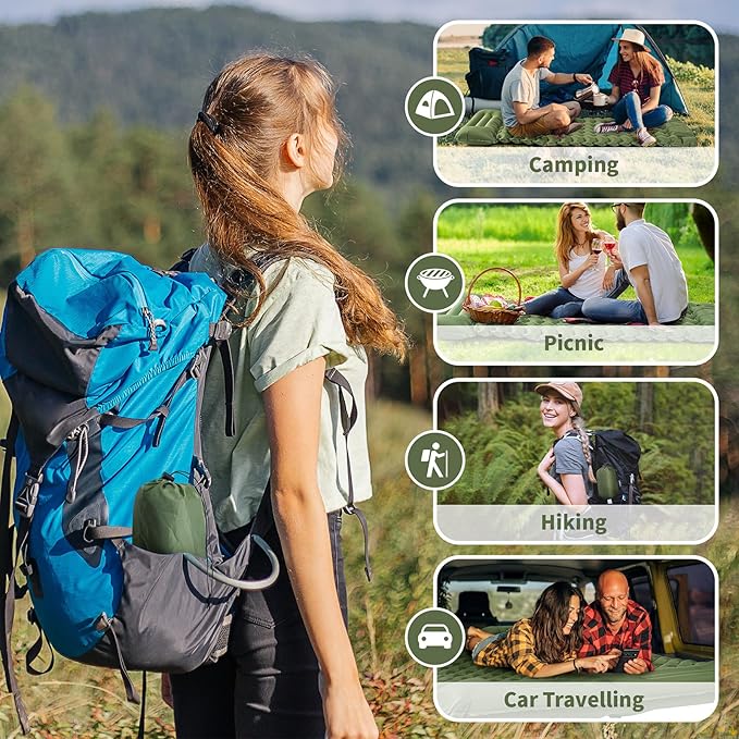 - Durable, Tear-Resistant & Dual-Sided: Made from upgraded 70D camping mat fabric with TPU coating, this sleeping mat is waterproof, tear-resistant, and skin-friendly. Dual-sided design reduces noise and adds comfort for every outdoor adventure