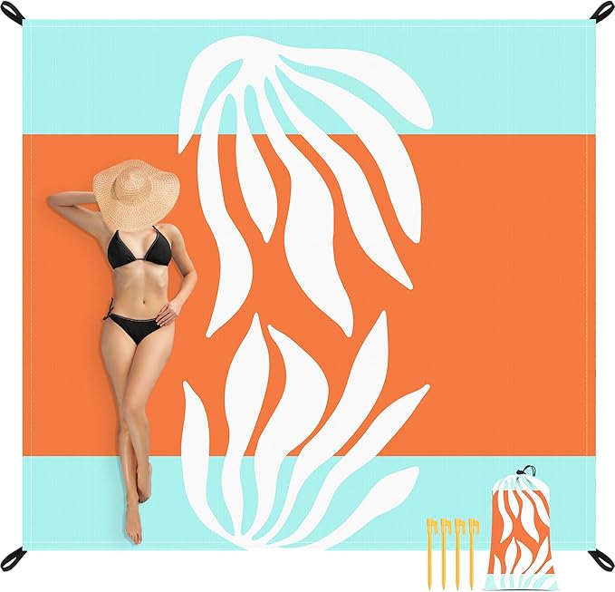 - Easy to Spot: The orange and blue contrast paired with the white coral print adds a vibrant touch. Whether lounging, camping, picnicking, or playing beach games, this beach blanket brings the beach vibes wherever you go, making it easy to locate your spot among similar towels and blankets