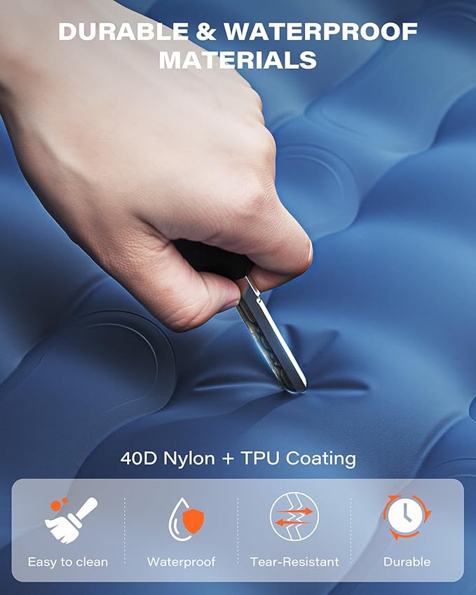 - 【Outdoor Grade Material】:Made of 40D nylon with TPU coating, this camping mattress pad is wear-resistant, tear-resistant, and easy to clean. Even in the rain, a quick wipe keeps it dry. Perfect as hiking gear, a travel bed, or for car camping—built to last and perform. Rigorously tested for durability, so you can rest easy wherever your adventure takes you.