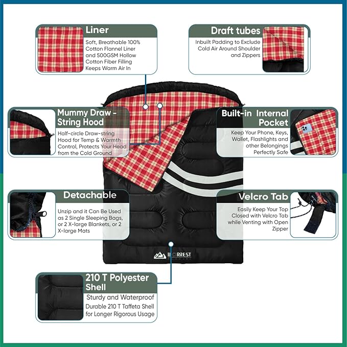- 100% SATISFACTION GUARANTEED: Your comfort is our priority! We stand by our double sleeping bag! If you have any questions or concerns, message us through the seller", and we’ll provide a quick solution