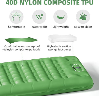 INVOKER 5.12" Camping Sleeping Pad with Built-in Foot Pump, Ultralight Inflatable Camping mat, for Camping, Backpacking, Hiking, Car Travel, Tent, Picnic, Beach, Green