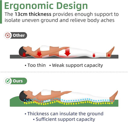 - 【Durable, Weather-resistant Nylon&TPU】Sleeping mat built with tear-resistant nylon and seam-sealed TPU, this mat durable, moisture, and UV exposure. Perfect for hikes, backpacking, tent camping, car travel, picnic, guest use, lunch break, courtyard rest etc. Let adventure not be limited by weather and location.Don't be afraid of hiking in rainy days. If it gets wet, you can wipe it with a dry cloth, and if it gets dirty, wipe it with a wet towel.
