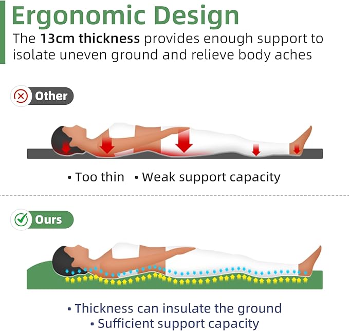 - 【Durable, Weather-resistant Nylon&TPU】Sleeping mat built with tear-resistant nylon and seam-sealed TPU, this mat durable, moisture, and UV exposure. Perfect for hikes, backpacking, tent camping, car travel, picnic, guest use, lunch break, courtyard rest etc. Let adventure not be limited by weather and location.Don't be afraid of hiking in rainy days. If it gets wet, you can wipe it with a dry cloth, and if it gets dirty, wipe it with a wet towel.