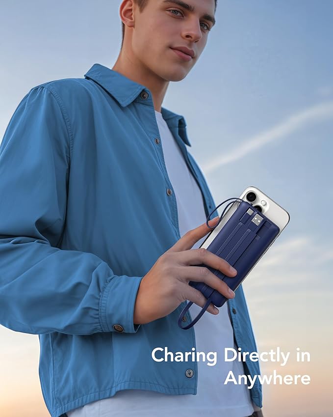 - Universally Compatible All Devices: Simplify your tech life,VRURC power bank with built in 4 cables (Micro cable/ type-c cable/ iPhone cable for output, usb-a cable for input), no any cords need again.equipped with USB-A and Type-c port. compatible with iPhone 16/15/14/13/12/11/8/7 series,Samsung Galaxy S24/S23/S22/S21/S10/S9/S8/Galaxy A51/52/53/54/55/Note 20/10, Google Pixel series, and more USB-C devices.