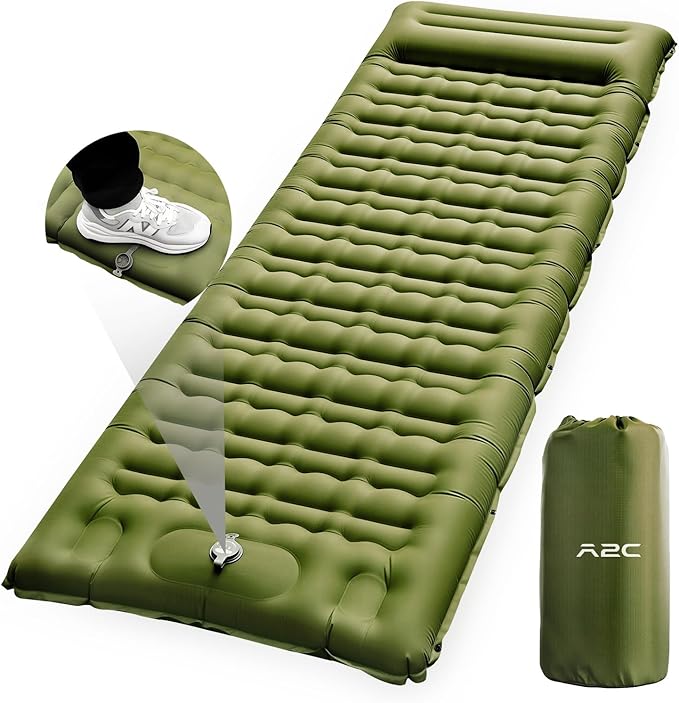 A2C Camping Sleeping Pad, Ultralight Inflatable Sleeping Pads with Built-in Foot Pump & Pillow, Compact Camping Mattress for Backpacking, Hiking, and Traveling