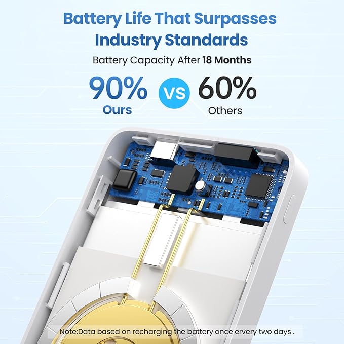 - 【Ultra-Strong Magnetic】 This magnetic portable charger is equipped with ultra-strong magnets that firmly attach to the back of the iPhone 15/14/13/12 Series to realize 7.5W magnetic wireless charging. Align your iPhone and battery with a snap. Say goodbye to disconnection issues caused by wireless charging misalignment.