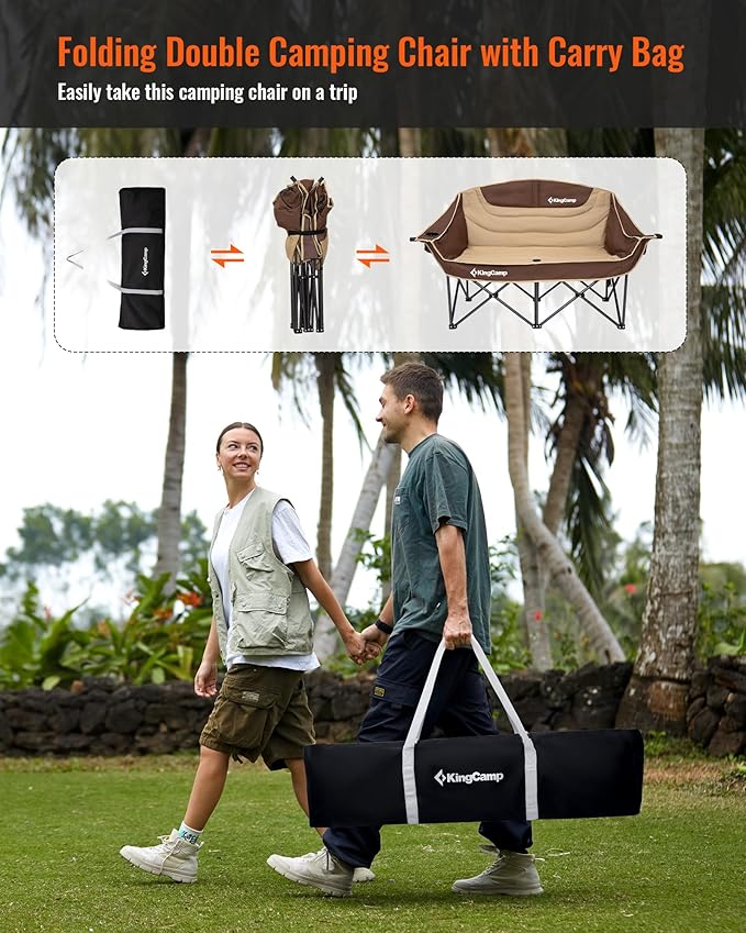 KingCamp Double Camping Chair, Oversized Heavy Duty Loveseat for Adults Portable Folding XL 2 Person Couch Padded Comfortable Two Seat with Cup Holder for Outdoor Lawn Backyard