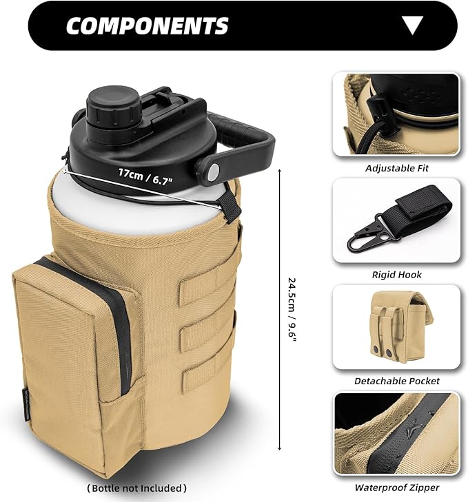 Water Bottle Holder Bag with Molle Strap - Water Bottle Carrier Pouch for Walking, Gym, Camping, Fishing, Hunting 32oz, 64oz, 128oz One Gallon Tactical Carrier Holder